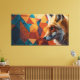 Un renard se tient en confiance, arborant sa fourrure orange vif. L'arrière - plan est décoré d'un motif géométrique coloré, créant une atmosphère intérieure animée.