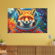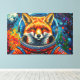Cette œuvre d'art vibrante d'Otis Porritt présente un renard saisissant, rendu avec des coups de pinceau riches et texturés, regardant avec confiance depuis l'intérieur d'un casque d'astronaute. La fourrure orange et blanche du renard contraste avec le bleu profond de sa visière et le rouge audacieux de son scaphandre, complété par un patch de drapeau américain. Derrière l'explorateur intrépide, un cosmos tourbillonnant éclate de bleus, de violets et d'orangés vifs, parsemé de corps célestes, dont une lune proéminente. Le style dynamique et pictural donne au médium numérique une qualité tactile, donnant vie à la scène cosmique.