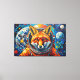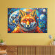 Cette œuvre d'art vibrante d'Otis Porritt présente un renard saisissant, rendu avec des coups de pinceau riches et texturés, regardant avec confiance depuis l'intérieur d'un casque d'astronaute. La fourrure orange et blanche du renard contraste avec le bleu profond de sa visière et le rouge audacieux de son scaphandre, complété par un patch de drapeau américain. Derrière l'explorateur intrépide, un cosmos tourbillonnant éclate de bleus, de violets et d'orangés vifs, parsemé de corps célestes, dont une lune proéminente. Le style dynamique et pictural donne au médium numérique une qualité tactile, donnant vie à la scène cosmique.