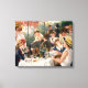 Renoir Impressionnisme peinture Luncheon of the Boating Party - La belle peinture a été créée par le célèbre impressionniste Renoir en 1880-1881. C'est l'une des peintures les plus célèbres de Renoir, qui capte une atmosphère de facilité et de plaisir. Des amis partagent de la nourriture, du vin et des conversations. Le tableau a été réalisé en France, sur un balcon donnant sur la Seine au restaurant Maison Fournaise à Chatou. C'est ici que les Parisiens sont allés louer des bateaux, faire la fête et passer un moment merveilleux. Les gens bavardent, faisant une fête amusante sous le couvert rouge et blanc.