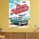 Bold pop-art / graphic style illustration of the dynamic side view of a retro vintage classic station wagon — green body, white roof, chrome accents, roof rack, round headlights, whitewall tires and jet fighters flying overhead in blue sky with clouds. Clean lines, vibrant colors and nostalgic vibe celebrate timeless 1950s family wagon design, road-trip spirit and retro adventure. Perfect classic wagon enthusiast wall art, retro garage decor, man cave poster, vintage vehicle lover statement piece or automotive nostalgia art for bedrooms, garages, offices, game rooms or travel spaces. High-quality print with razor-sharp detail and striking color pop.