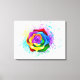 Grand rose fleuri avec pétales arc-en-ciel sur arrière - plan blanc, peint sur des éclaboussures de peinture colorée et lumineuse. 3d