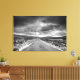 Cette photo montre un noir et blanc d'une route menant à une tempête de pluie.