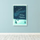 Ho-ho-ho Joyeux canevas de Noël. Conçu avec une illustration vintage de Père Noël dans son traîneau tiré par ses rennes. De petites étoiles arrosent le ciel nocturne. Des pins couverts de neige au sol. Vintage esprit rétro.