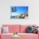 Toile avec image de la ville médiévale de Santorin et drapeau grec, dans les îles Cyclades, Grèce