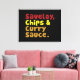 Amusant Takeaway Humour de restauration rapide ~ Saveloy, chips et sauce au curry. Globe Trotters se spécialise dans l'imagerie idiosyncratique du monde entier. Vous y trouverez des Cartes de Voeux, Cartes Postales, Posters, Mousepads et plus encore.