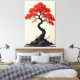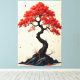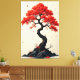 Un arbre écarlate aux branches complexes et aux feuilles rouges vibrants, apportant une touche artistique à un paysage serein.