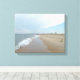 Scène de plage l'après-midi avec des enfants jouant et des gens dans les vagues au loin.
