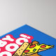 Découvrez Scooby-Doo assis avec un grand sourire, tenant une tranche de pizza farcie en croûte.