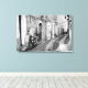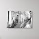 Impression en toile d'un scooter vintage garé devant une maison dans une rue pavée d'une ville en Italie en noir et blanc élégant.