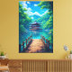 Step into a world of breathtaking tranquillity with this vibrant, anime-inspired Japanese landscape art print. This stunning piece captures a picturesque wooden pagoda nestled over a sparkling, azure lake, surrounded by a lush, emerald forest.