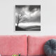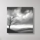 Ce magnifique tableau de paysage noir et blanc présente un arbre solitaire dressé dans une vaste vallée sous un ciel nuageux. La scène intemporelle évoque des sentiments de solitude, de sérénité et de puissance durable de la nature.