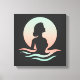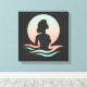 A minimalist black silhouette of a graceful woman set against a soft pastel sun and flowing wave elements. This elegant design blends themes of femininity, nature, and tranquility.
