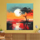 Cette œuvre atmosphérique capture un moment de solitude tranquille sous un coucher de soleil radieux. Une silhouette solitaire se dresse au bord de l'eau, à côté d'un arbre balayé par le vent, découpée sur un ciel vaste peint dans des tons chauds d'orange brûlé, de rouge corail et d'or doux. Le soleil surdimensionné est suspendu bas sur l'horizon, sa lumière se reflétant sur la surface calme du lac, créant un miroir de rêve de couleur et d'émotion.