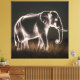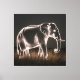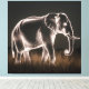 Silhouette d'éléphant lumineux, photo d'une silhouette d'éléphant lumineux. Le corps de l'éléphant est illuminé, avec la lumière qui souligne la hauteur majestueuse de son tronc et l'arc de son dos. L'éléphant se tient dans un champ de hautes herbes, qui sont également éclairées. L'arrière - plan est un noir solide. L'éclairage crée un sentiment de grandeur.
