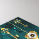 Or, clés antiques avec engrenages et cadrans accrochés sur chaînes dorées sur arrière - plan vert lumineux.