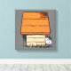 Ce dessin de cacahuètes représente Snoopy, reposant partiellement à l'intérieur de sa niche emblématique, décorée pour Halloween. Le toit de la niche est peint d'une orange vif, et des toiles éffrayantes ornent les coins à la fois sur le toit et sur les murs, ajoutant à l'atmosphère étrange et festive. Snoopy, en regardant du bas à droite, semble surveiller avec une expression calme, presque endormie, ajoutant un sentiment de calme charme d'Halloween à la scène.