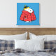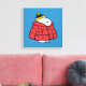 This vibrant canvas art print features a large-scale graphic of the beloved Snoopy character dressed warmly for the cold. Snoopy is prominently displayed wearing a large, puffy red winter coat and a blue and yellow knit cap, set against a striking, solid blue background that fills the entire square frame. This canvas is a bold and cheerful piece of wall décor, perfect for adding Peanuts charm to a bedroom, office, or any space during the winter and holiday season.