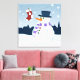 Illustration de bonhomme de neige dans une scène de Noël avec son propre stock personnel fixé et suspendu à une ligne de lavage.