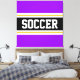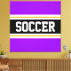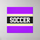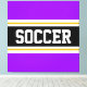 Ce design sportif coloré présente du texte en relief SOCCER à l'intérieur d'une large bande horizontale noire avec des rayures blanches et jaunes dorées contre des rayures extérieures violettes. Le texte peut être personnalisé.