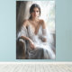Cette superbe aquarelle d'art saisit un moment d'intimité sereine et de beauté délicate. Une belle jeune femme, portant une déshabillée en soie blanche et moelleuse, est assise dans une chaise à côté d'une fenêtre, son regard tourné vers l'artiste (spectateur). La lumière douce de la fenêtre l'illumine, mettant en évidence le doux drap de la soie et son expression tranquille. La technique de l'aquarelle fluide améliore la douceur, l'intimité et la qualité éthérée de la scène. Cette pièce est une célébration d'allure tranquille, de grâce féminine et d'élégance sobre.