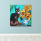 TOILE SOUCHES AVEC CHAT NOIR EN TURQUOISE BLEUE