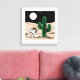 Regardez Spike assis à côté d'un cactus dans le désert la nuit.