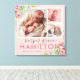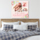 Un décor personnalisé de pépinière de petite fille enveloppé de toile personnalisée avec vos photos et texte. Ce design féminin sucré présente une bordure florale pastel colorée autour d'un modèle photo collage avec espace pour 3 photos de nouveau-nés carrés. Ajoutez le nom de votre bébé monogramme, les statistiques de naissance ou tout autre texte personnalisé ci-dessous. Utilisez les outils de conception pour choisir n'importe quelle couleur arrière - plan, modifier les polices de texte et les couleurs et ajouter plus de photos pour créer une impression murale de type gardienne.