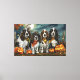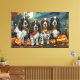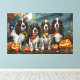Libérez l'esprit éffrayant avec ce design d'Halloween étrange avec une meute de chiens sous un ciel sombre et clair de lune, entourée de chauves-souris volantes et de citrouilles brillants. Parfait pour ceux qui aiment une touche de plaisir effrayant avec leurs amis en fureur !