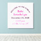 Nouvelle bienvenue au monde bébé fille rose. Personnalisez avec le nom et les statistiques de naissance de bébé en texte rose, et la date de naissance en texte noir. La couleur de fond est rose clair (vous pouvez voir la couleur en cliquant sur Personnaliser). Décoration murale de chambre de nursery adorable. Créations originales de TamiraZDesigns.