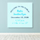 Nouveau bébé garçon bleu Bienvenue au monde bébé. Personnalisez avec le nom et les statistiques de naissance de bébé en texte bleu, et la date de naissance en texte noir. Décoration murale de chambre de nursery adorable. Conceptions originales de TamiraZDesigns.