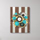 Toile Steampunk Clock and Turquoise Roses on Striped