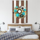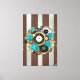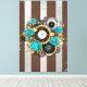 Toile Steampunk Clock and Turquoise Roses on Striped