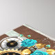 Toile Steampunk Clock and Turquoise Roses on Striped