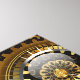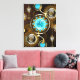Turquoise lenses with antique watch with brass gears and golden keys on rusty, brown background. Steampunk style.