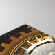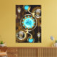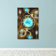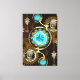 Turquoise lenses with antique watch with brass gears and golden keys on rusty, brown background. Steampunk style.