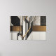 A bold fusion of geometric structure and organic delicacy: stylized black-and-white leaves intertwine with wood, metal, and golden diagonal lines. Art that bridges contemporary architecture and abstract nature—sophisticated, balanced, and deeply narrative.