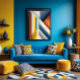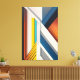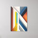 An explosion of colors and shapes in this vibrant geometric work. Diagonal and vertical lines in orange, blue, and yellow create movement and depth. Ideal for modern environments seeking visual energy and bold design. Perfect for highlighting neutral walls with contemporary sophistication.