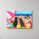 Été Breeze Labradors Impression de toile. Funny Labrador Retriever sur la plage Peinture design. Black Labrador et Chocolate Labrador et Yellow Labrador sont tous peints sur le tableau. Des chiens joyeux et mignons du Labrador Retriever s'amusent beaucoup sur la plage. Paysage d'été coloré et gai avec Labs. Peint par Naomi Ochiai du Japon.