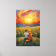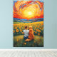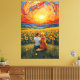 Celebrate the timeless bond between a girl and her best friend with this breathtaking Post-Impressionist style painting. A young woman and her loyal golden retriever sit peacefully together on a grassy hill, gazing out over an endless, vibrant field of blooming sunflowers. Above them, a magnificent sunset unfolds with thick, expressive brushstrokes in brilliant shades of yellow, orange, and red, creating a mesmerizing swirling sky. This warm, joyful artwork captures the magic of golden hour and makes a perfect gift for dog lovers, nature enthusiasts, or anyone seeking a touch of whimsy.