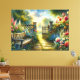 Step into a storybook moment with this enchanting garden scene, where soft golden sunlight filters through lush trees and spills across a cobblestone path leading to a welcoming open gate. Bursting with vibrant cottage blooms—dahlias, hollyhocks, foxgloves, and delphiniums—the garden brims with life and color, painted in soft pinks, sunny yellows, and deep corals that blend seamlessly with cool lavender and sky blues. A rustic wooden bench nestled among the flowers invites quiet reflection, while dappled light and painterly textures evoke a peaceful, whimsical mood. The overall style is dreamlike and romantic, steeped in cottagecore nostalgia and wrapped in the cozy serenity of an early morning bloom. AI generated artwork.