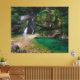 Photo de paysage d'une magnifique cascade Virje en Slovénie. La partie inférieure de la photo est une eau turquoise cristalline avec des couleurs vertes et un lit rocheux. Au-dessus de gros rochers se dressent recouverts de mousse verte. La cascade semble émerger d'au-dessus de ces gros rochers qui tombent et coulent sur eux. Au-dessus de ces rochers et cascades se dresse une forêt verte luxuriante.