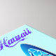 Surf Hawaii. Belle illustration avec 3 planches de surf à l'allure super avec un design floral des années 60 sur les planches. Fleur rose rose et une belle police de script à l'aspect grunge.