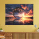 A reflective sphere mirrors the vast cosmos against a dramatic sunset. The scene blends celestial and terrestrial elements in harmony.