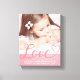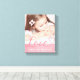 Sweet Love Baby Girl Canvas Faire-part de naissance avec des tons doux de rose fraise.