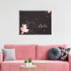 ce joli tableau aux couleurs douces et contrastées représente une petite fée rose assise sur des feuilles qui fait de la magie. Des étoiles et des arabesques décorent le tout. Le prénom de l'enfant est inscrit en couleur grise. Un formidable cadeau!