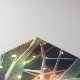 Un arbre sans feuille avec un jet de neige scintille de lumières multicolores sur un ciel d'hiver sombre. Une petite créature a fait sa maison dans le tronc d'arbre - il y a une petite porte rouge avec une couronne de Noël dessus, et sur le tronc se trouvent de petites fenêtres rondes qui brillent avec la lumière chaude de la cheminée et la lumière des bougies de l'intérieur.