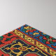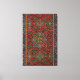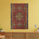 Tapis persan - motif d'art arabe, Emile Prisse d'Avennes, imprimé dans le livre La Decoration Arabe. (1885). Cette image est une reproduction photographique basée sur un antique tapis persan richement détaillé avec un dessin complexe. Il présente un motif audacieux et symétrique au centre, utilisant des motifs géométriques et floraux. Les couleurs dominantes sont le rouge profond avec des accents d'or, de bleu et de vert. La bordure du tapis contient un motif floral répété, ajoutant une couche supplémentaire de détails ornés. Le savoir-faire est évident dans les éléments de conception complexes entrelacés et les couleurs vives.