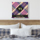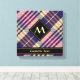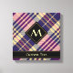Design écossais violet, jaune doré et bleu. Motif sans couture. Texte et monogramme personnalisés.