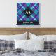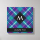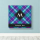 Design écossais vert mer, violet et bleu. Motif sans couture. Texte et monogramme personnalisés.